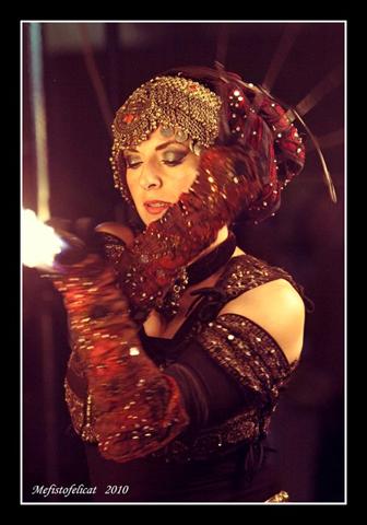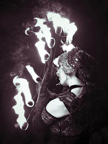 eine sinnliche, kraftvolle und sehr tänzerische Performance mit Handflammen, Feuerfächern Poi Feuerketten und Feuerseilen, zu atmosphärischer Musik (auch gemafrei), oder zu Live-Musik.